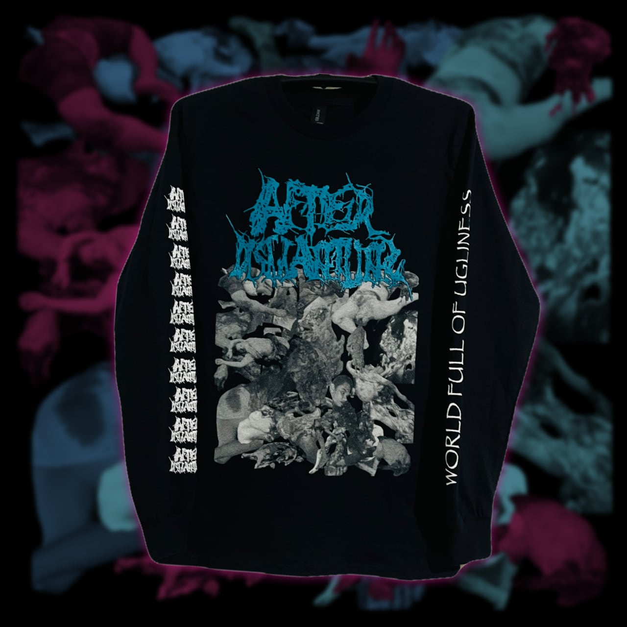 ギルダン製 6.0オンス。AFTERDISMANTLING 1st EP "World Full Of Ugliness"のアートワークが使用されたロングスリーブTシャツ。右袖に練ロゴ、左袖にアルバムタイトルのデザイン。